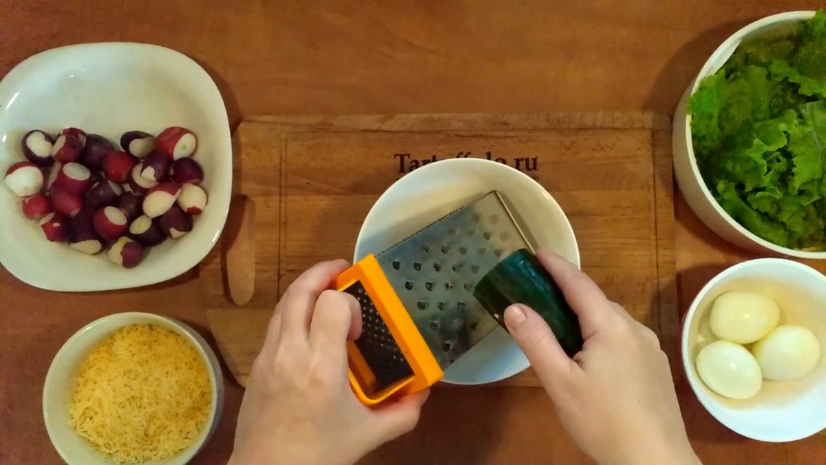 Ингредиенты создают баланс: редис приносит свежесть, сыр — плотность, яйцо — воздух, зелень — яркость, майонез — связку вкусов. В итоге получается лёгкое и приятное блюдо, которое можно подать как к повседневному меню, так и к небольшому застолью.