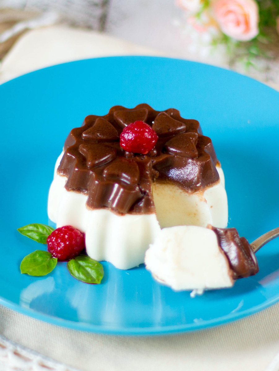 Теперь аккуратно выливаем ванильную массу на застывший шоколадный слой, стараясь не повредить его. Убираем десерт в холодильник минимум на 3-4 часа, а лучше на ночь, чтобы слои стабилизировались.