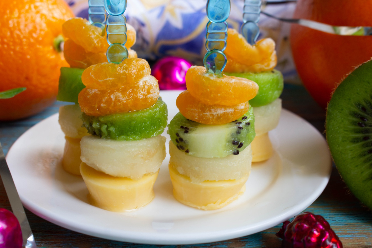 После того как все компоненты подготовлены, начините шпажки: сначала наденьте несколько мандариновых долек, затем поочередно добавьте киви, грушу и сыр. Эти красочные канапе можно подавать немедленно, но также их можно слегка охладить перед подачей. Однако лучше всего использовать охлажденные продукты на этапе приготовления, чтобы избежать излишней влаги на готовом деликатесе.