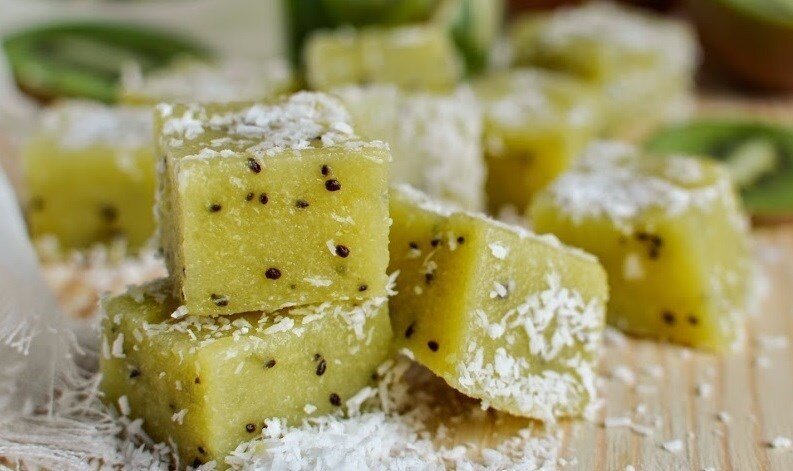 Выберите спелые и качественные фрукты, очистите их от кожуры и нарежьте небольшими кусочками.Измельчите фрукты в блендере до получения однородного пюре.Замочите агар-агар в воде на несколько минут.Поставьте фруктовое пюре на небольшой огонь и нагрейте, помешивая, пока оно не закипит. Затем добавьте агар-агар и варите еще 2-3 минуты, при желании подсолив медом.Разлейте массу по небольшим силиконовым формам или в более крупную, при этом соблюдая толщину не менее 1,5-2 см.Оставьте застывать на 3-4 часа, после чего аккуратно извлеките и нарежьте на кубики, обваляв в кокосовой стружке.Важно: из-за отсутствия сахара-консерванта мармелад следует хранить в холодильнике.