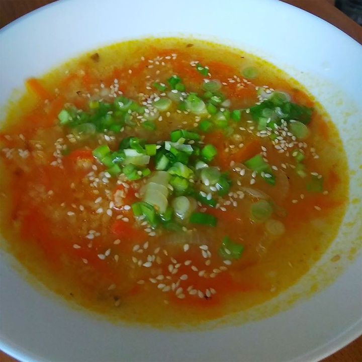Подавайте суп, посыпав зеленью и семенами кунжута, приправленными солью. Приятного аппетита!