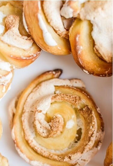 Сверните тесто в рулет и нарежьте его на кусочки толщиной 2 см. Раскройте их, чтобы меренга немного выглядывала — это добавит вашему печенью интересный хрустящий элемент при выпечке.