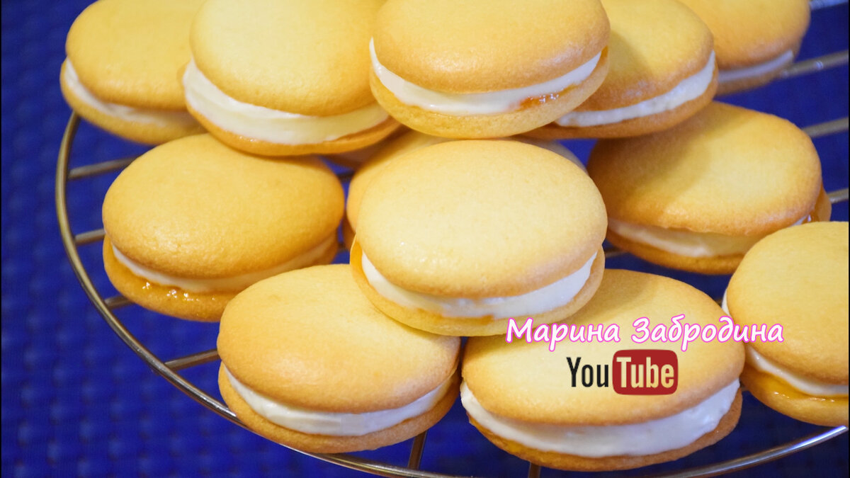 Шаг 9: Наполнить кондитерский мешок с кремом и отсадить его на одну половинку бисквита, накрыть второй, слегка прижимая.