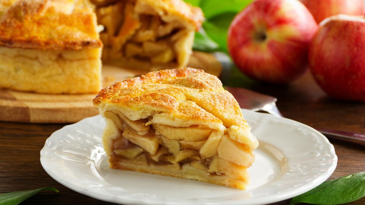 Разогрейте духовой шкаф до 180 градусов Цельсия и выпекайте пирог в течение 35-40 минут, пока он не станет румяным и не начнёт источать запах карамелизированных яблок.