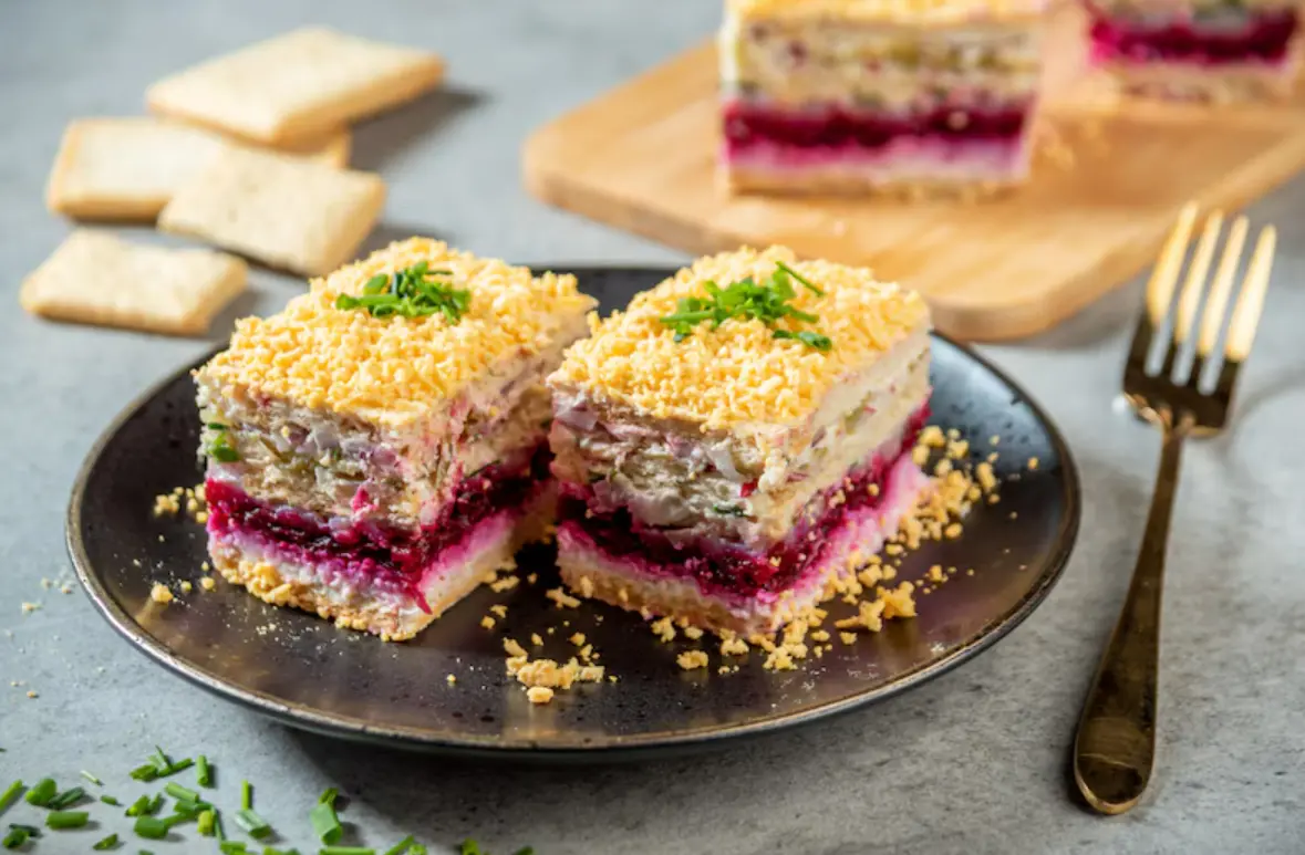 Необычный салат с сельдью: торт, который удивит ваших гостей