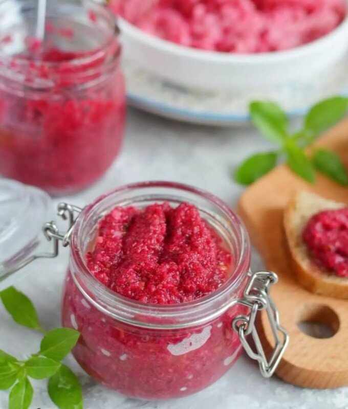 Перед завершением добавляют соль и черный молотый перец, тщательно перемешивают. Если соус получается слишком густым, можно добавить немного кипяченой воды. Затем перекладывают блюдо в удобную для хранения баночку.