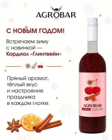 Скоро наступит 2026 год, и все вокруг готовятся к празднику. Пусть этот Новый Год принесет море радости, ярких эмоций и тепла в ваши сердца. Встречайте зимнюю новинку от AGROBAR — кордиал «Глинтвейн»!