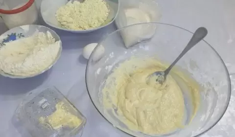 Процесс начинается с подготовки теста. В глубокой миске теплое молоко смешивается с сахаром, после чего добавляются дрожжи. Эта смесь тщательно перемешивается до полного растворения. Вводится половина муки и замешивается тесто. Оно должно настояться в тепле под накрытием около 20 минут.