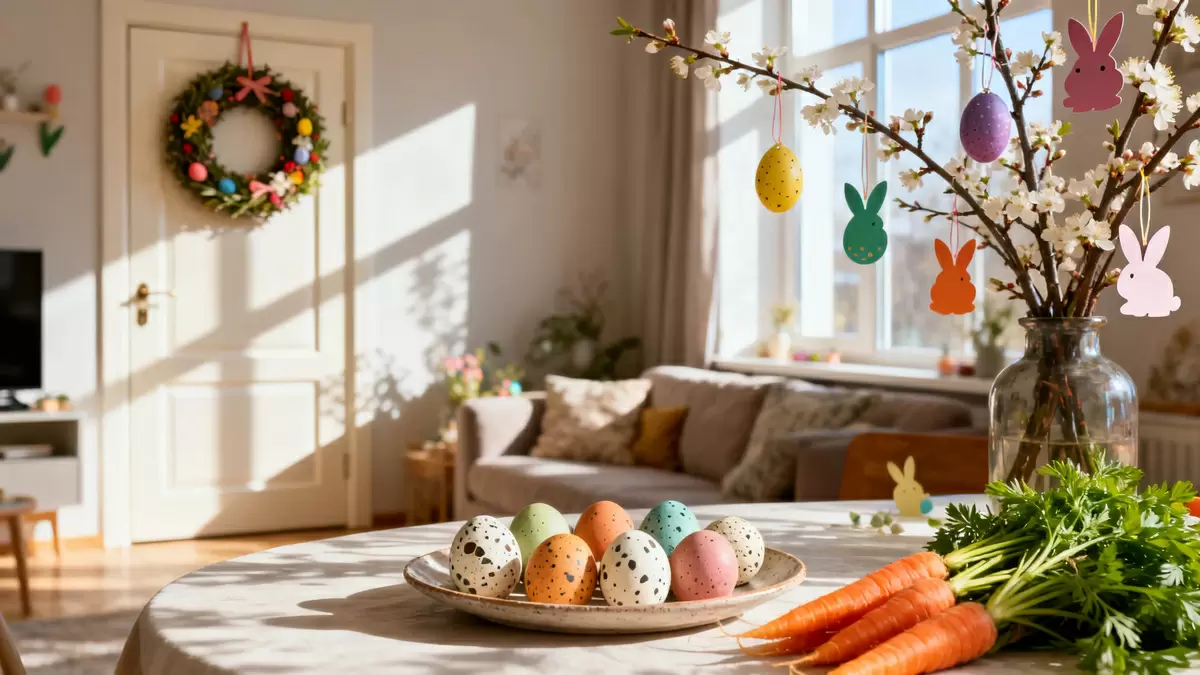 Салат «Пасхальный» станет отличным дополнением к основным блюдам. Он включает в себя картофель, ветчину, свежий огурец и яйца, создавая гармонию вкусов. Украшением могут служить перепелиные яйца, окрашенные в яркие цвета, а свежий укроп напомнит о весеннем пробуждении. Такой салат будет прекрасно выглядеть на столе как в порциях, так и в большой салатнице.