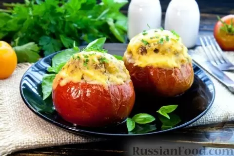 Помидоры с фаршем и сыром: Сочные помидоры, фаршированные мясом и запеченные под аппетитной сырной корочкой — это идеальное решение для ужина. Секрет в том, чтобы выбрать зрелые помидоры, которые не только вкусные, но и достаточно плотные, чтобы удерживать начинку.