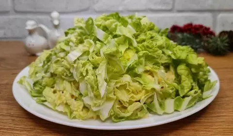 Теперь наступает момент сборки. На дно выкладывается слой картофеля, сверху немного майонеза, затем курица, маринованный лук, яйца с майонезом и сыр. Завершает композицию нарезанная пекинская капуста, придающая легкость и прозрачность, словно облачко.