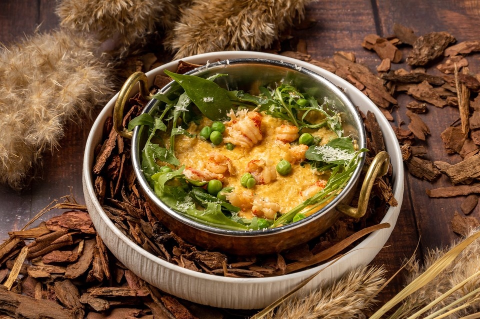 Горячее блюдо в меню, названное «Золото Караганки», состоит из пшенной каши с нежными раковыми шейками, выловленными в чистых водах реки Большой Караганки. Это угощение, обладающее насыщенным вкусом, сравнивают с аркаимской крепостью – теплым, сытным и надежным.