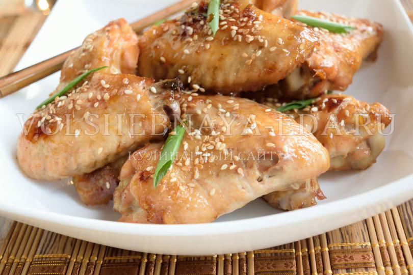 Что делает эти крылышки такими аппетитными? Все дело в маринаде! Благодаря сочетанию соевого соуса и мёда, крылышки получают неповторимый вкус. А добавление свежего имбиря и чеснока придаёт им пикантность, а несколько капель острого соуса делают их особенно привлекательными для любителей жгучего.