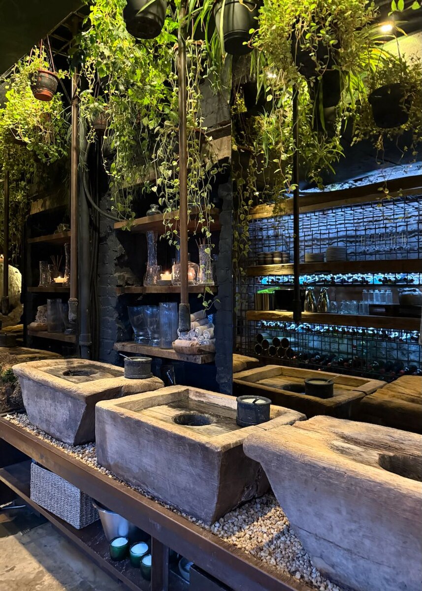 Дизайн ресторана насыщен элементами индонезийской культуры — от мебели до декора. Это создает атмосферу уюта и спокойствия, которая только усиливается благодаря ароматам всевозможных блюд. Главной изюминкой является необычная станция для мытья рук, которая представляет собой настоящий аттракцион для посетителей.