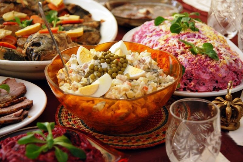 - Увеличивают потребление еды: Запечённые яства, салаты с майонезом, десерты и алкоголь — это идеальный коктейль для калорийного избытка. Исходя из привычного режима, в таком формате калорий поступает в два-три раза больше нормы.