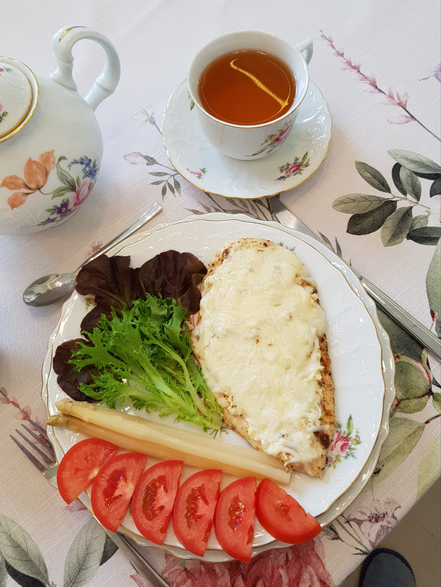 Запекать в предварительно разогретой до 180 градусов Цельсия духовке в течение 20 минут. Как только корочка зарумянится, блюдо можно подавать к столу, украсив его свежими помидорами, листьями салата и маринованной спаржей. Приятного аппетита!