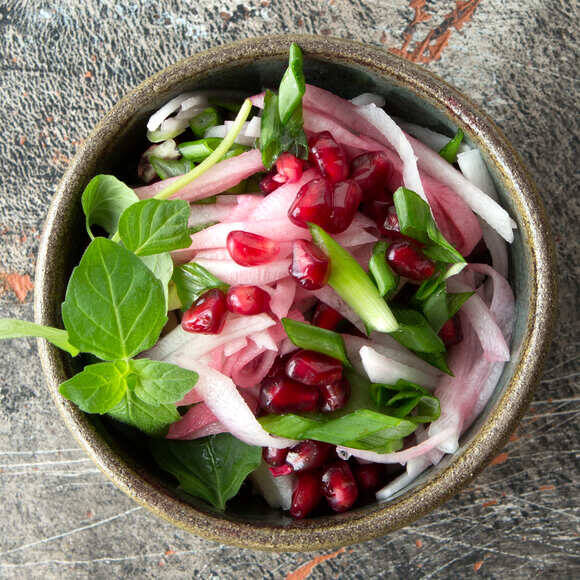 Смешайте все ингредиенты на тарелке и позвольте салату запустить процесс внутреннего сияния.