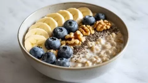 - Овсянка: Богата сложными углеводами и клетчаткой, овсянка обеспечит энергию на 3–4 часа. Добавьте ягоды и мед, чтобы сделать завтрак еще более питательным.