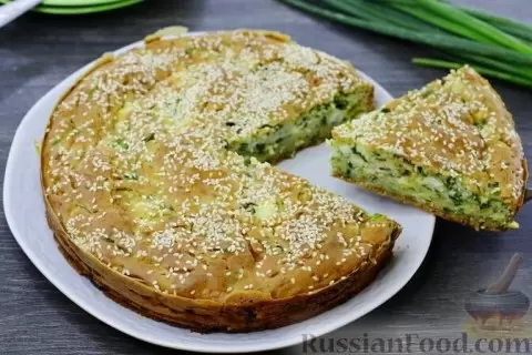 - Заливной пирог с кабачками: Легкий и воздушный, этот пирог радует свежестью и гармоничным сочетанием яиц, лука и плавленого сыра на основе кефира и натертого кабачка.