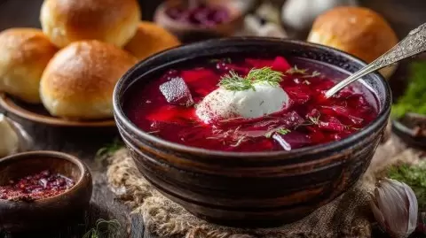 Маринованная свекла не только хорошо дополняет борщ, но и служит отличной закуской. Используйте красный винный уксус для более мягкого яркого вкуса, или яблочный для лёгкости. Дополнить блюдо можно рублеными орехами или зеленью для контраста.