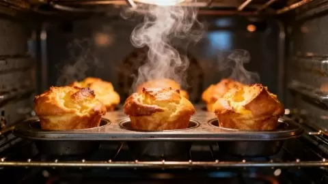 Разогрейте духовку до максимальной температуры, обычно это 220 градусов. Заполните формы тестом, оставляя примерно треть объема свободным. Важно соблюдать одно правило: не открывать дверцу духовки в процессе выпекания, иначе поповеры осядут. Первые 20 минут они должны выпекаться при высокой температуре, затем градусы можно снизить до 180 и оставить ещё на 20 минут. В это время булочки поднимутся и приобретут характерный вид.