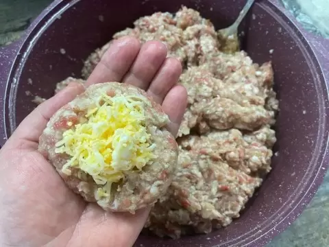 Основная особенность этих котлет заключается в их сырно-яичной начинке, которая делает каждую порцию невероятно вкусной.