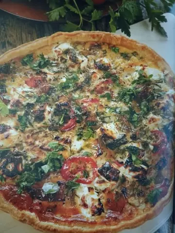 Тесто раскатывается в круглый пласт толщиной 2 мм и помещается в заранее смазанную маслом форму. Вовнутрь выкладывается овощная начинка и заливается приготовленной смесью. Выпекать тарт следует в разогретом тандыре около 25–30 минут при температуре 200°С.