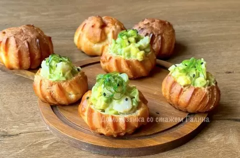 Чтобы закуска выглядела еще более привлекательно, можно украсить ее салатом Чука из морских водорослей, посыпать семенами кунжута и полить соусом унаги. Элегантно выкладывая профитроли, можно моментально привлечь внимание гостей и создать атмосферу уюта и праздника.