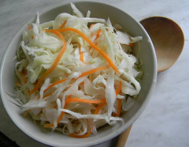 Квашение капусты начинается с её нарезки. Оптимальным вариантом будет использовать специальную терку, что значительно ускоряет процесс. Капусту нарезать тонкими полосками, затем добавить натертую морковь. Соль следует добавлять не в сухом виде, а в виде раствора. Для этого в подготовленной воде (можно использовать очищенную бутилированную или охлажденную кипяченую) растворяется соль.