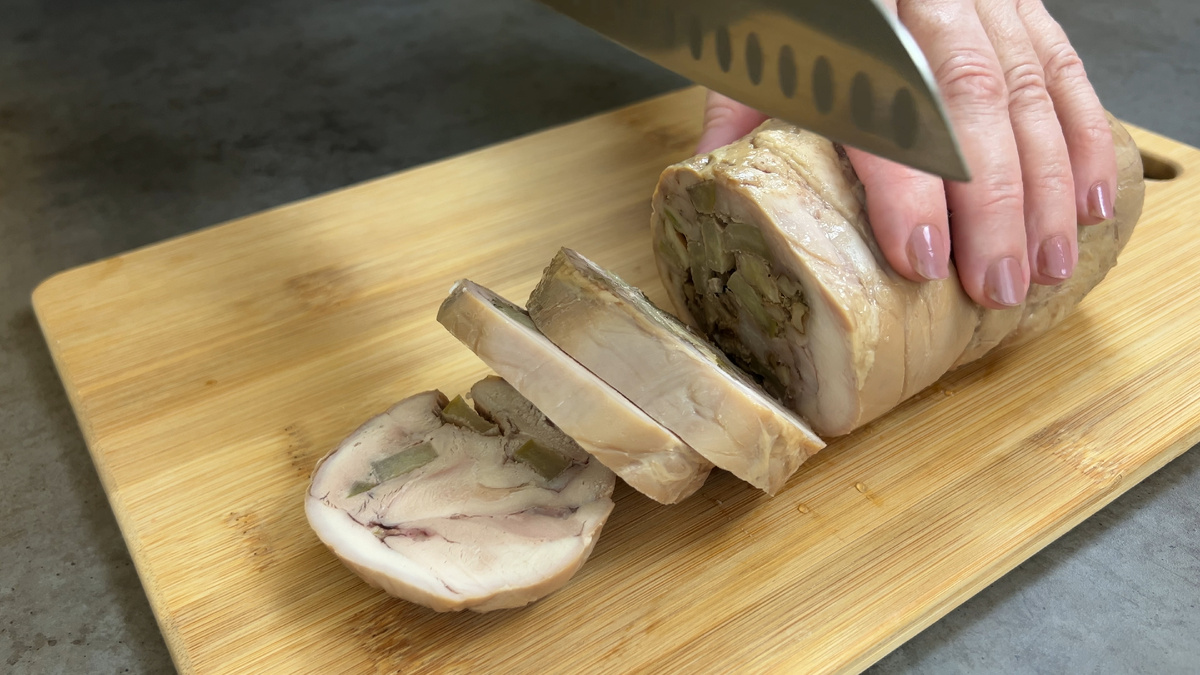 Куриный рулет — это непревзойдённая комбинация сочного мяса, свежих яблок и хрустящих грецких орехов. Этот рецепт обойдётся без консервантов и ненужных добавок, только специи и лучшие продукты. Такой рулет станет настоящей изюминкой на семейном ужине или празднике, а его нарезка напомнит о домашней колбасе. Это отличный способ отказаться от магазинных мясных изделий!